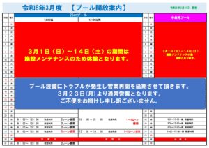 2025年3月度プール開放案内