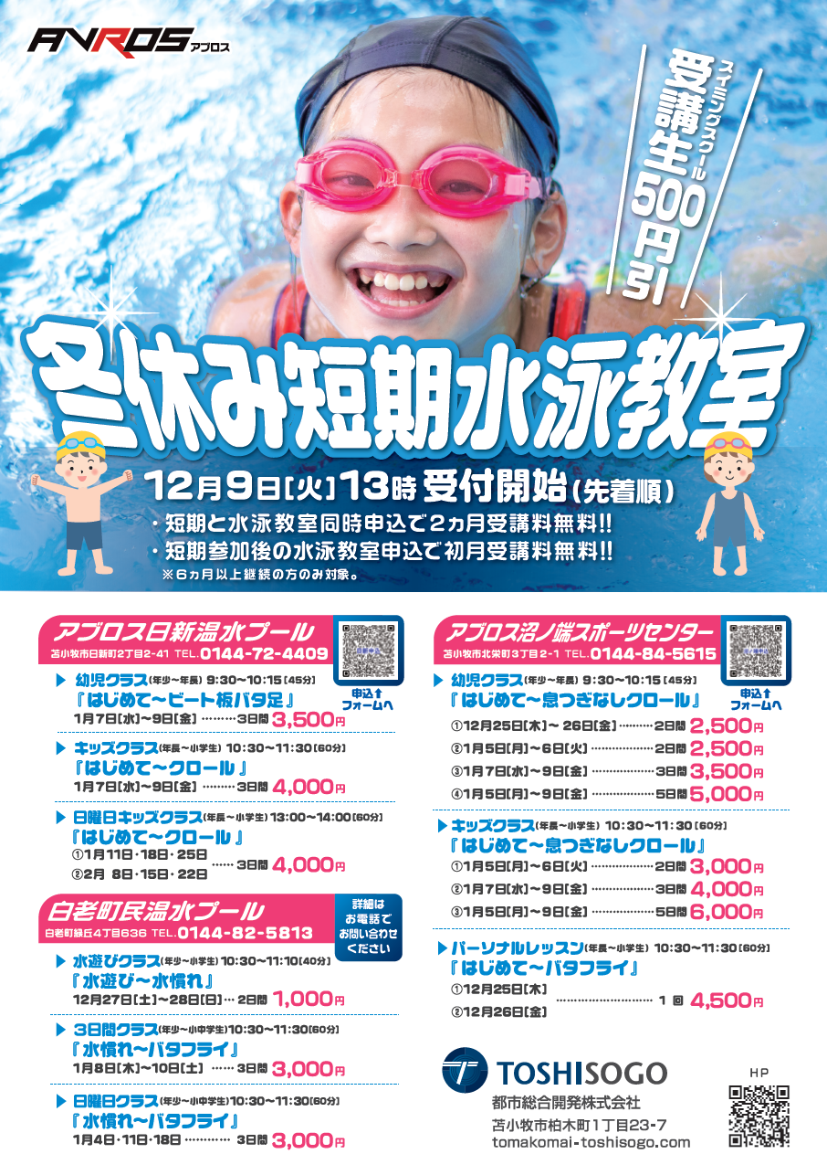 🏊冬の短期水泳教室のおしらせ🏊【12/8新規】