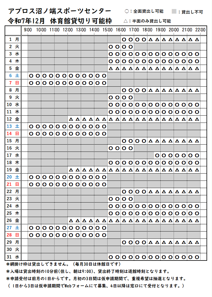◆◇◆ 令和7年12月の貸切り可能枠 ◆◇◆
