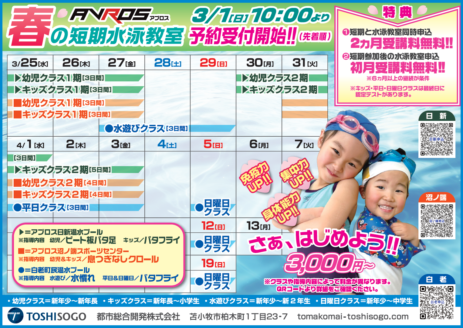 🌸🏊春の短期水泳教室のおしらせ🏊🌸【2/10更新】