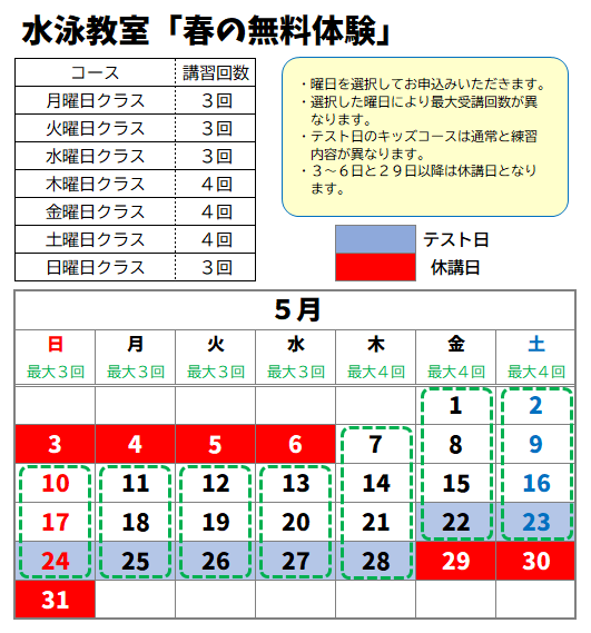 ※祝日・5週目(5/3,4,5,6,29,30,31)は休講となります。
